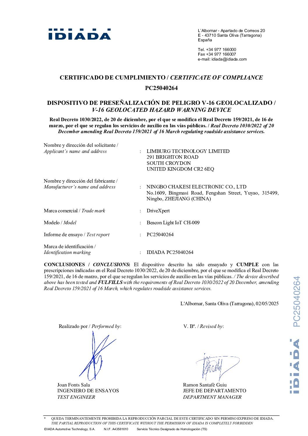 ✅ Homologada por la DGT (cumple con la normativa de seguridad vigente).
