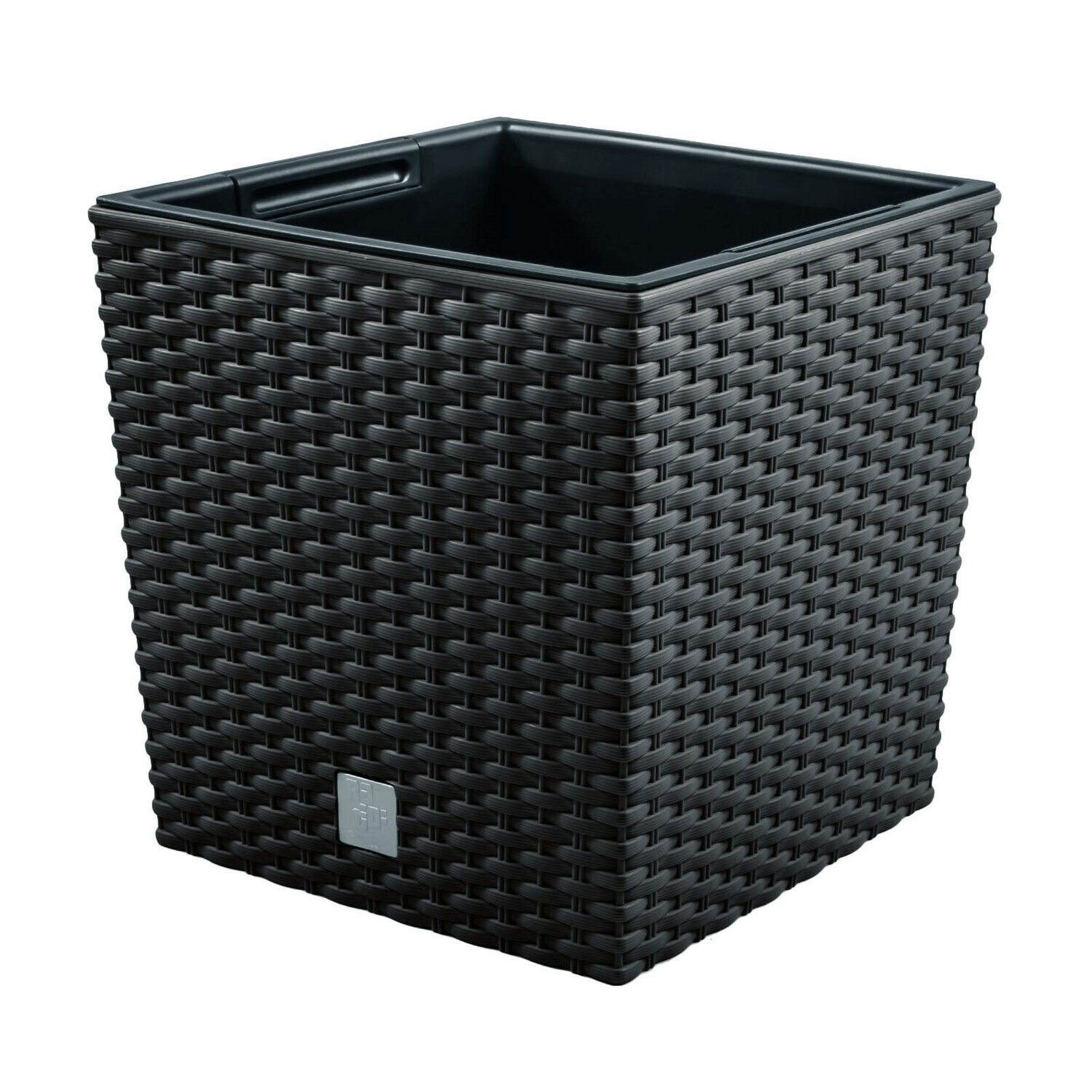 Maceta de resina plastica modelo rato quadro bajo con acabado simil rattan.