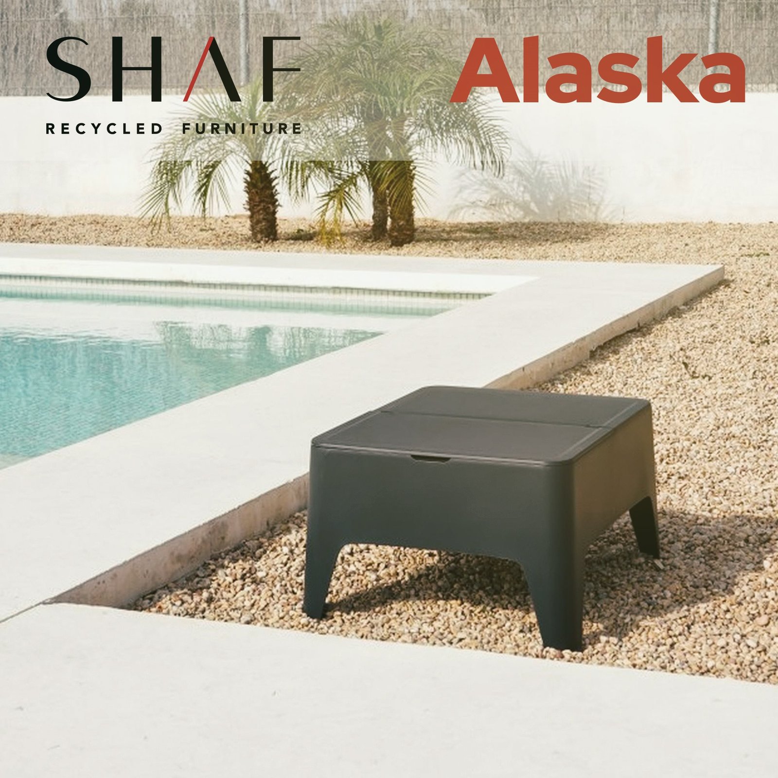 Al igual que el resto de nuestro mobiliario y sets para el jardín, la mesa auxiliar Alaska está fabricada en España con materiales completamente reciclados.