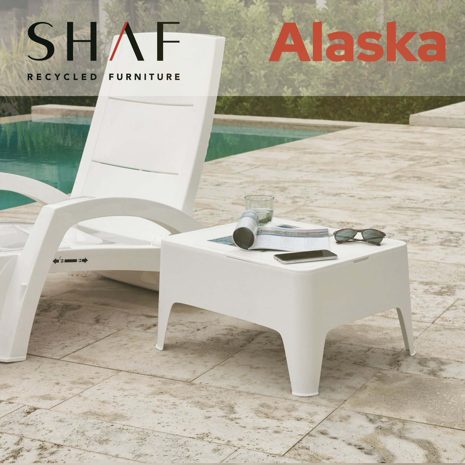 Al igual que el resto de nuestro mobiliario y sets para el jardín, la mesa auxiliar Alaska está fabricada en España con materiales completamente reciclados.