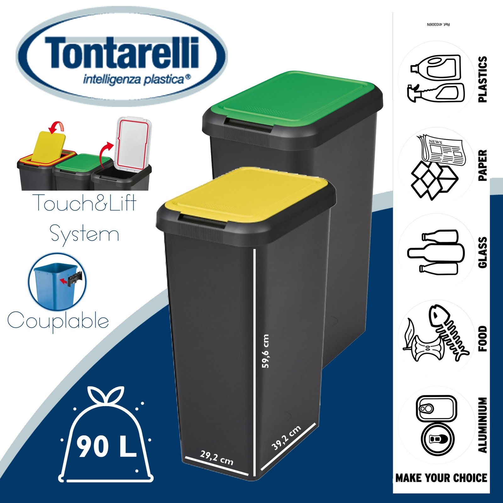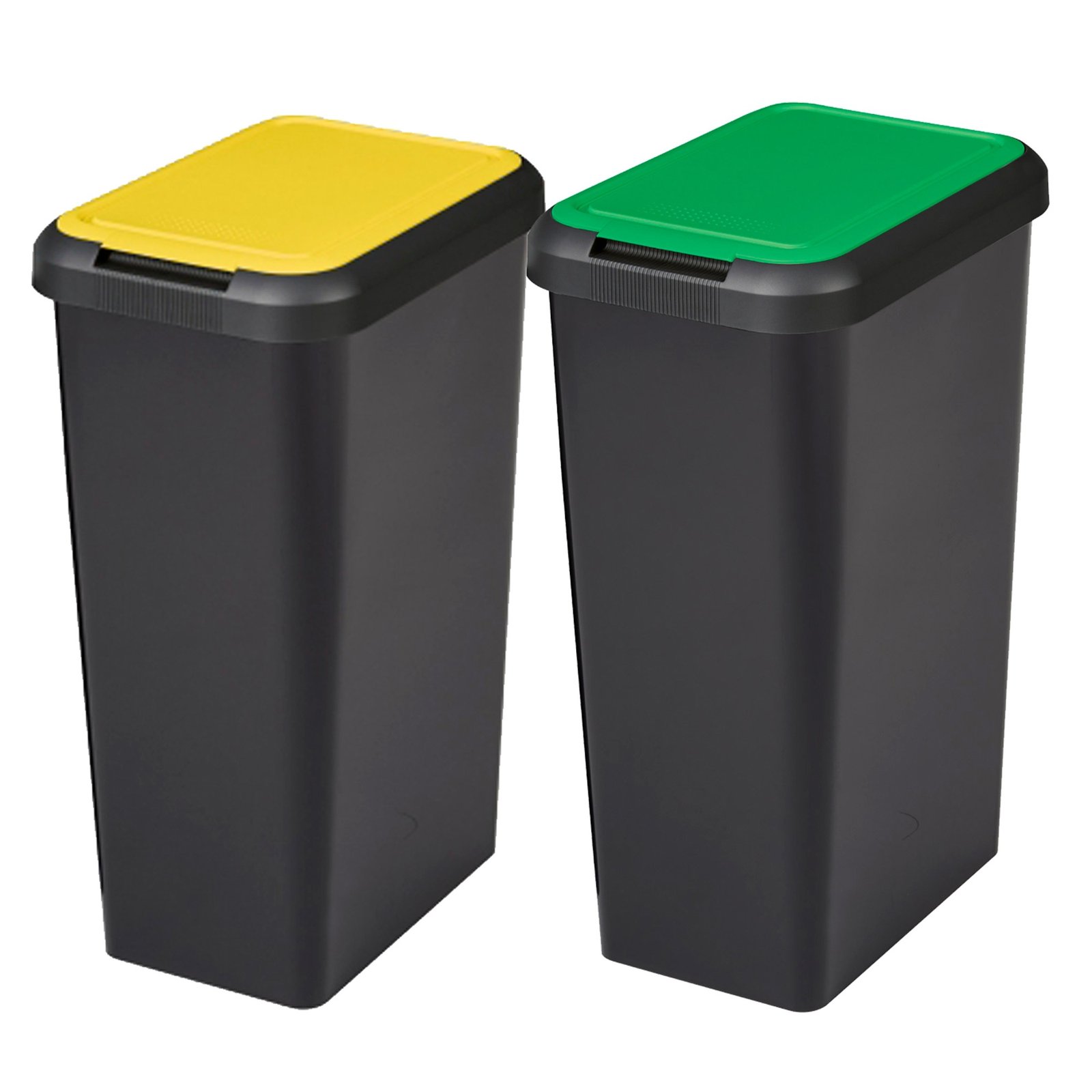 Set 2 papeleras Touch&lift 90 litros color negro con tapa amarilla/verde