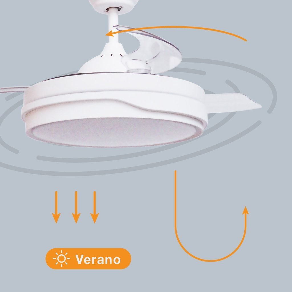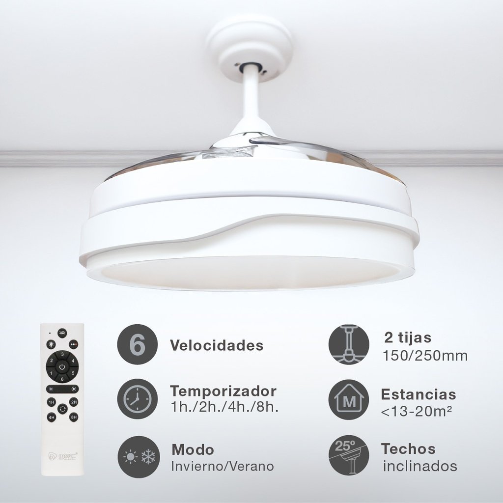 Ventilador techo Lentini con luz CCT regulable y mando Ø107 3 aspas retráctiles DC Blanco