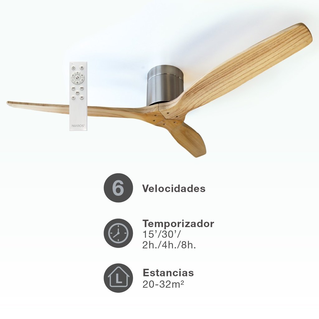 Ventilador techo Mucari con mando Ø132 3 aspas DC Níquel